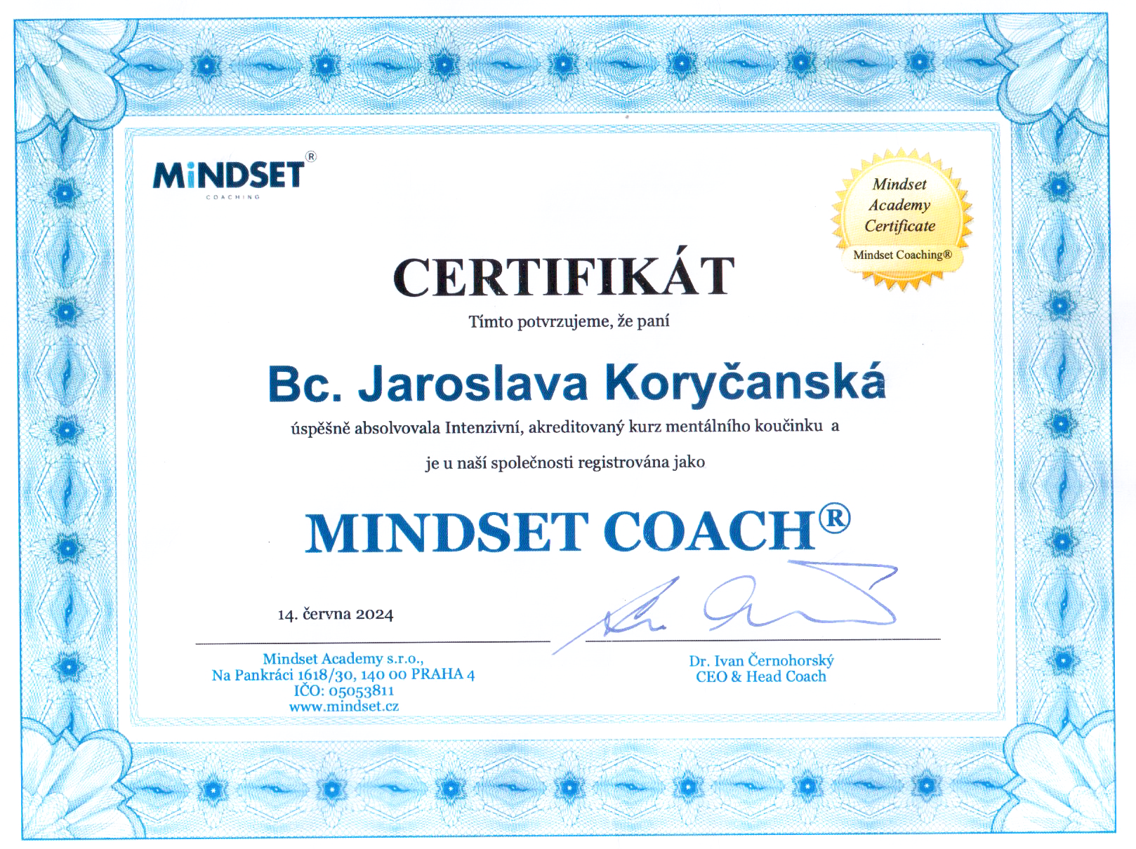 Rád bych jako lektor vyjádřil své uznání Jarce Koryčanské, jejiž schopnost překonávat překážky a nevzdávat se i v náročných situacích byla obdivuhodná a inspirující pro jednotlivce i celou skupinu. Tyto její vlastnosti z ní dělají ideálního kandidáta pro jakoukoli budoucí spolupráci, a proto ji s jistotou doporučuji všem, kteří hledají spolehlivého a schopného partnera pro řešení náročných situací jednotlivce i pro týmové koučinky ve firmách.